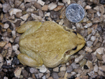 How long can the metamorphosis from tadpole to frog take? I have a tadpole in a bucket that I have been feeding since the end of the last wet season! He has grown a bit larger and paler but no appendages. - view